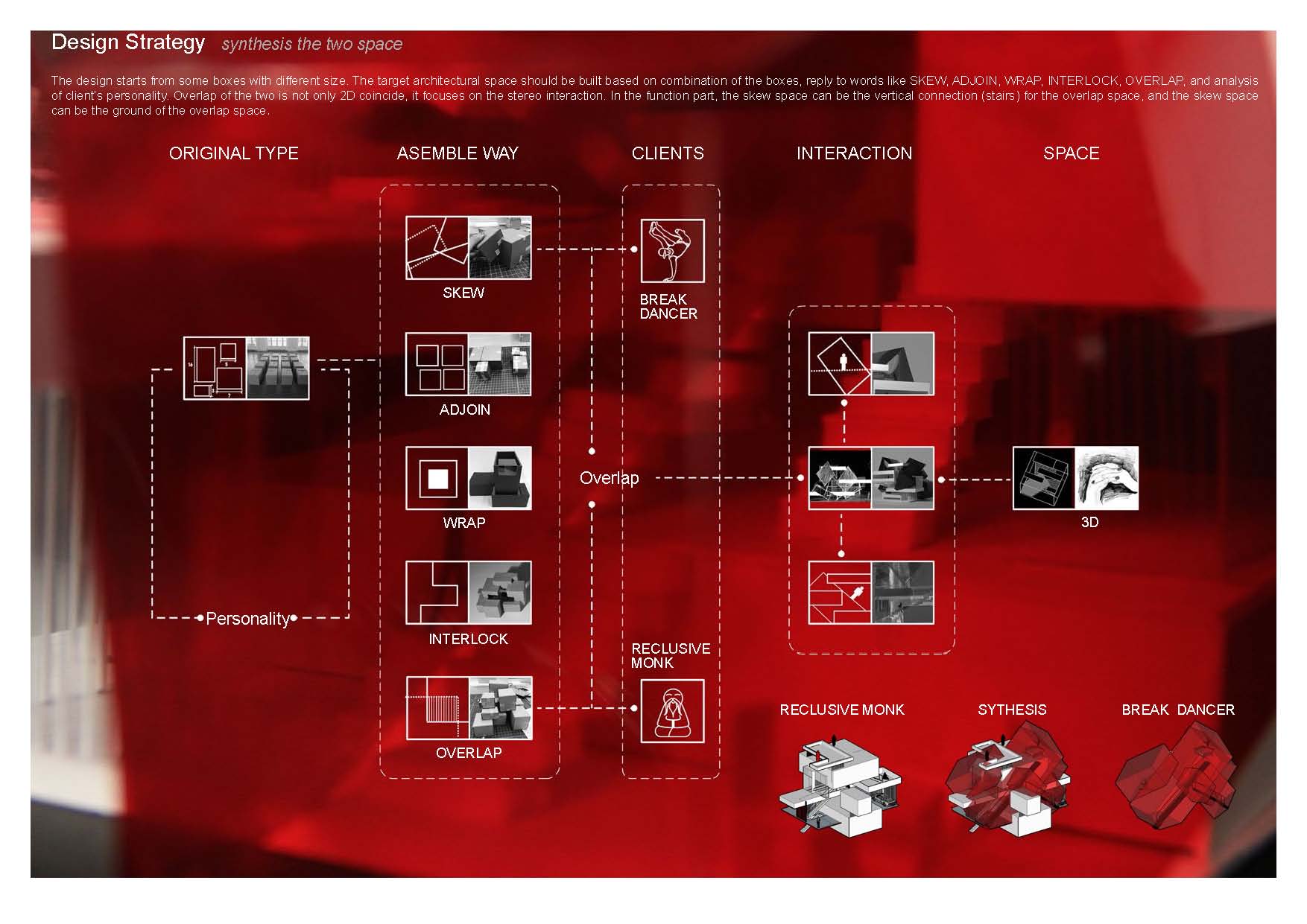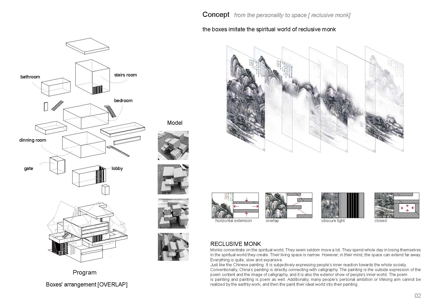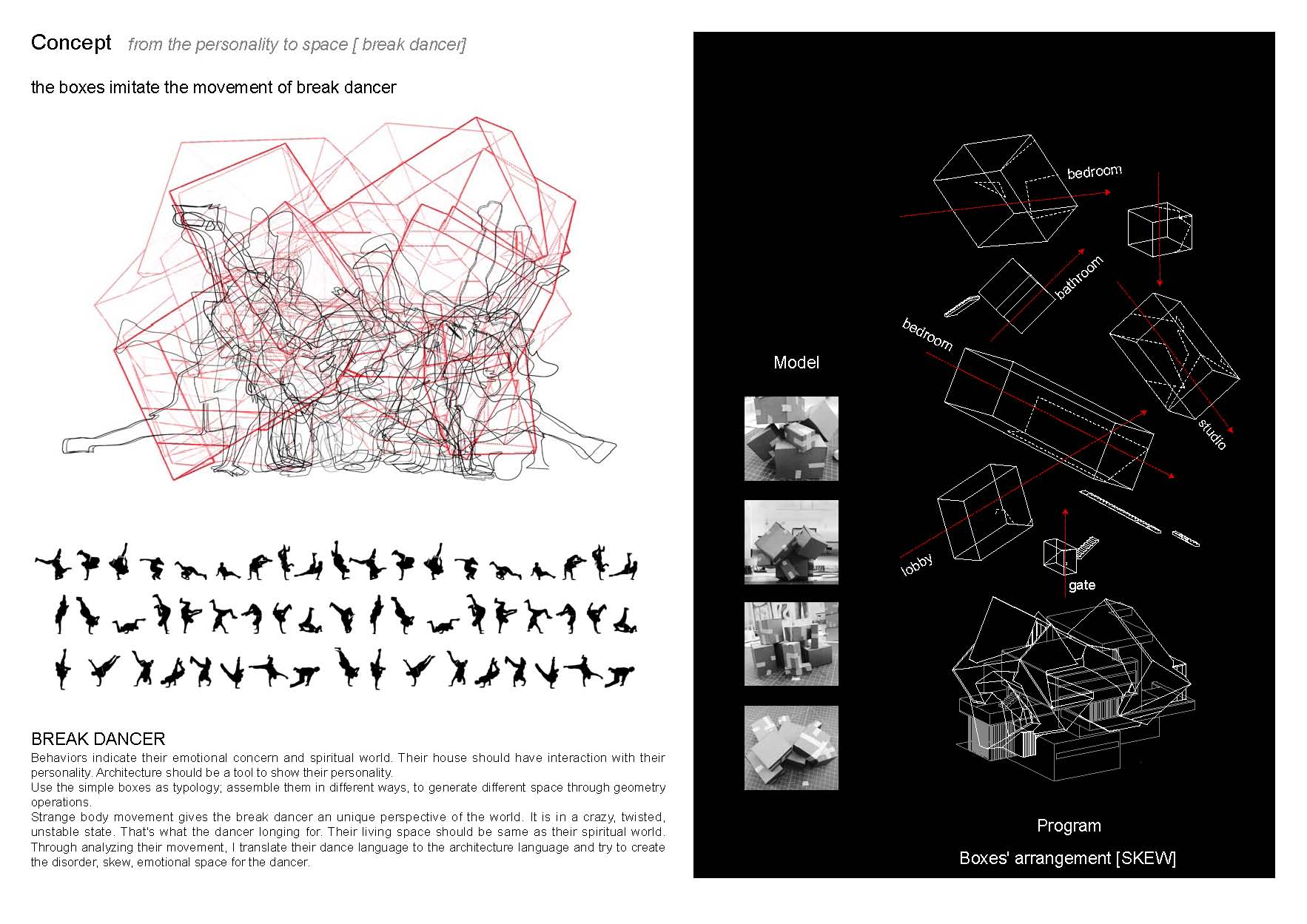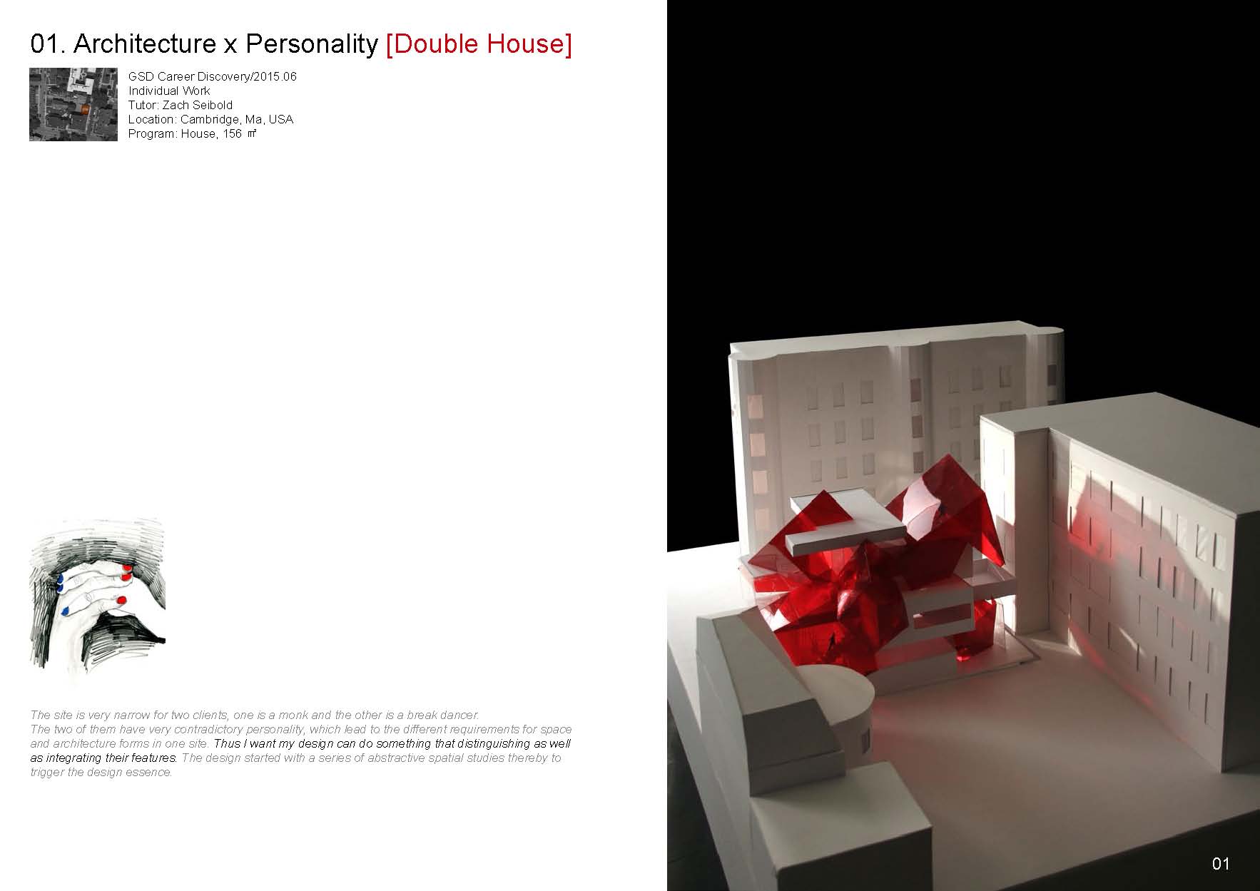 围绕学生原有作品,我们提出了“混杂”的概念,把抽象的空间和人的个性相结合。该作品一举获得美国顶尖名校建筑学专业硕士录取,包括Cornell, Columbia,Upenn, WUSTL等。